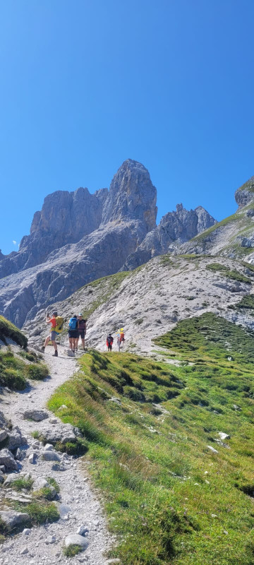 Das erste Teilstück führt vom vorderen Gosausee entlang des gut markierten Weges Nr. 612 Richtung Steiglpass. Dabei kommen wir zur unbewirtschafteten Scharwandhütte und danach zur Gedenkstätte für verunglückte Bergsteiger. Weiter gehen wir über den teilweise etwas zerklüfteten Weg den Steiglpass hoch (2015m). Von hier führt der stellenweise etwas ausgesetzte und drahtversicherte Weg hinunter zur Hofpürglhütte wo wir nächtigen. Nach dem Frühstück führt der Weg Nr. 611 vorbei an der Bischofsmütze zum Sulzkar, mit Ausblick auf viele der 3000er der Hohen Tauern, und weiter über das Jöchl, das Stuhlloch zB zur Theodor-Körner-Hütte, wo wir zu Mittag einkehren, und weiter zum Törleck. Von hier hat man noch einmal einen herrlichen Blick auf den Dachsteingletscher und den Gosausee. Bei der Breininghütte kehren wir zum Abschlussgetränk noch einmal ein und steigen danach eine Stunde zum Parkplatz ab (hier besteht die Möglichkeit zur Abfahrt mit Gondel)